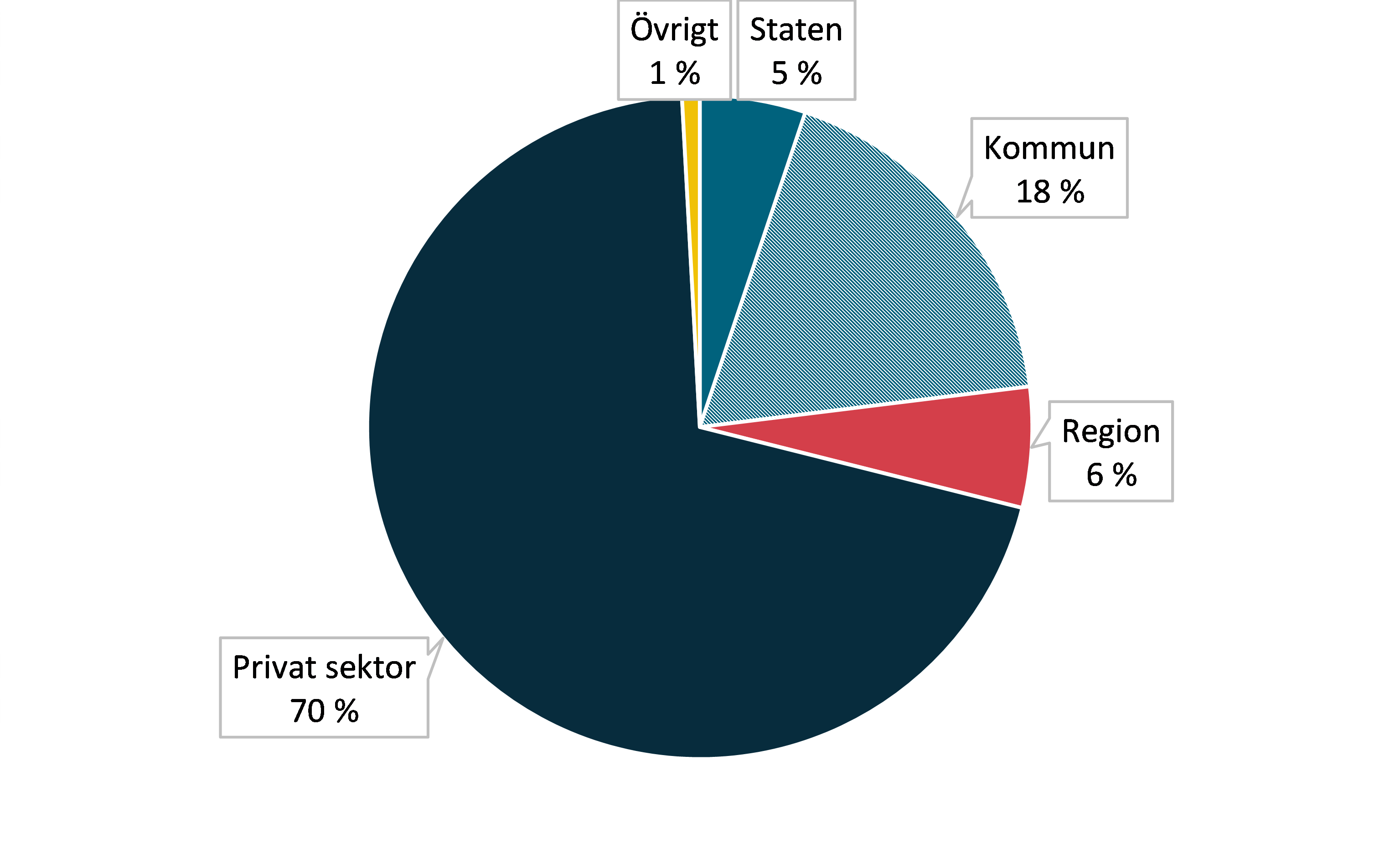 Andel anställda i staten och övriga sektorer 2023 (procent)